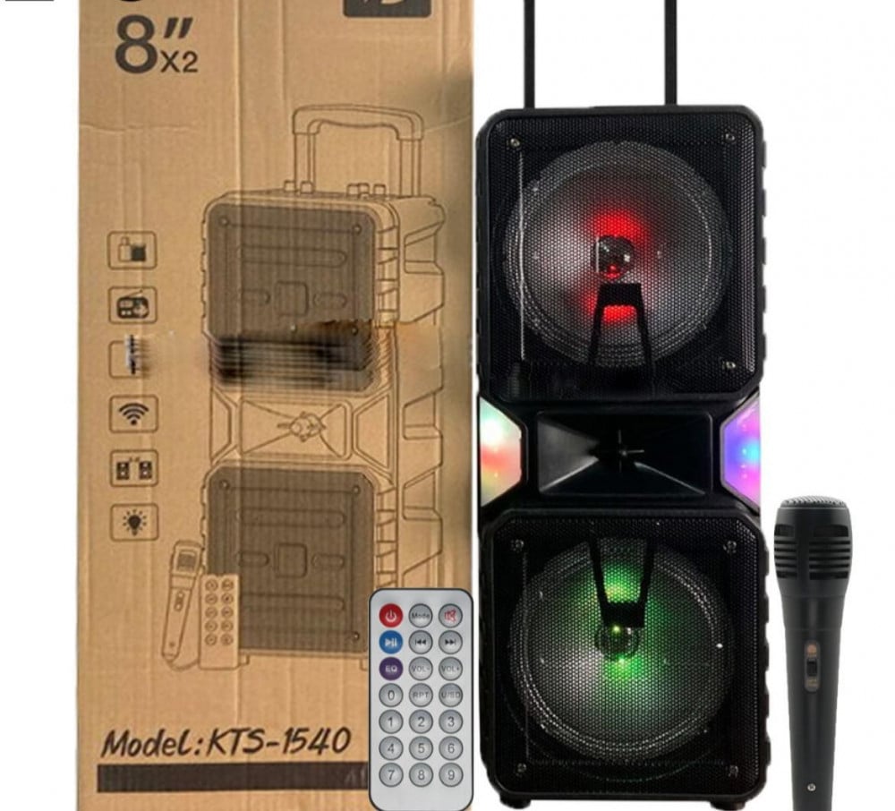 Kts-1540 أحدث تصميم مزدوج 8 بوصة مكبر صوت لاسلكي قابل للحمل أسود بالطاقة الموسيقى الكاريوكي عربة Kts رئيس
